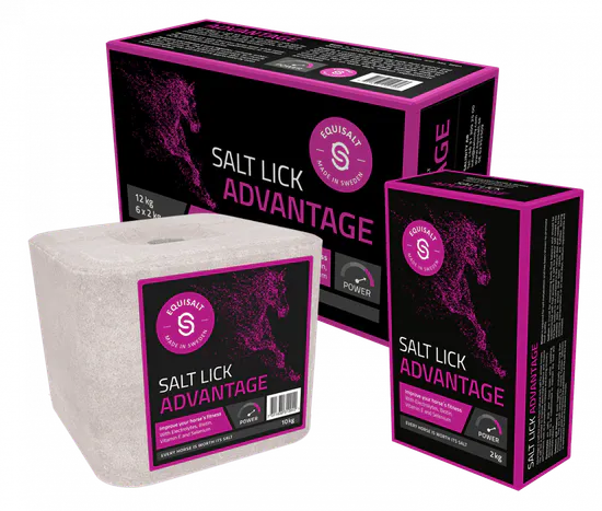 Equisalt Advantage är en saltsten av naturligt bergsalt för aktiva hästar. Equisalt Advantage består av naturligt bergsalt berikad med elektrolyter, biotin, E-vitamin och selenjäst för att främja elektrolytbalans och muskelprestation, både förebyggande och under återhämtning.