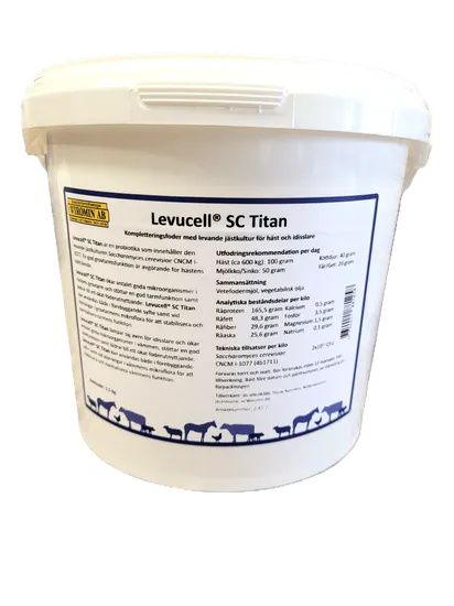 Levucell® SC Titan tillför den aktiva levande jästen Saccharomyces cerevisiae CNCM I-1077. En god grovtarmsfunktion är avgörande för hästens välmående. Levucell är både en probiotika och prebiotika det vill säga, Levucell ökar mängden viktiga mikroorganismer samt bidrar till en god miljö för tillväxt och överlevnad av de befintliga goda mikroorganismerna i hästens grovtarm. Levucell® SC Titan tillför mikroorganismer till hästens grovtarm som bryter ned fiberfraktionen i fodret och på så vis förbättrar foderutnyttjandet. Levucell kan användas både i förebyggande syfte samt vid störningar i grovtarmens mikroflora för att stabilisera och normalisera tarmens funktion.