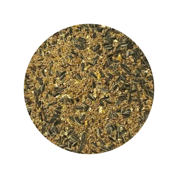 Sammansättning: små vete, gul hirs, solrosfrön, krossad majs, röd dari, hampfrö, krossad bygg och krossad havre.